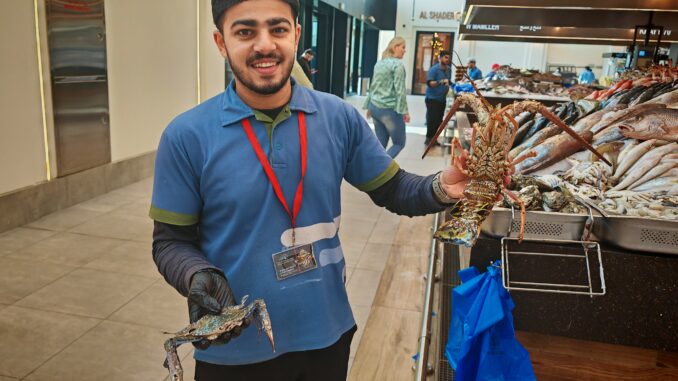 Der Mina Zayed Fish Market wurde in den letzten Jahren komplett saniert und zählt heute zu den kulturellen Anlaufpunkten der Stadt. 104 frische Fischstände, 44 Reinigungsstationen, acht Restaurants, ein Supermarkt und Stände für Trockenware, Obst und Gemüse. Das alte, etwas chaotische Hafenmarktfeeling ist geblieben, aber alles läuft jetzt geordneter ab, inklusive digitalem Bestelltracking an den Reinigungsstationen.